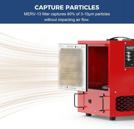 Filtration grade:High efficiency MERV-13 filter captures 90% of 3-10μm particles. Quickly and safely filters airborne particles to protect internal components from clogging while improving your work environment.