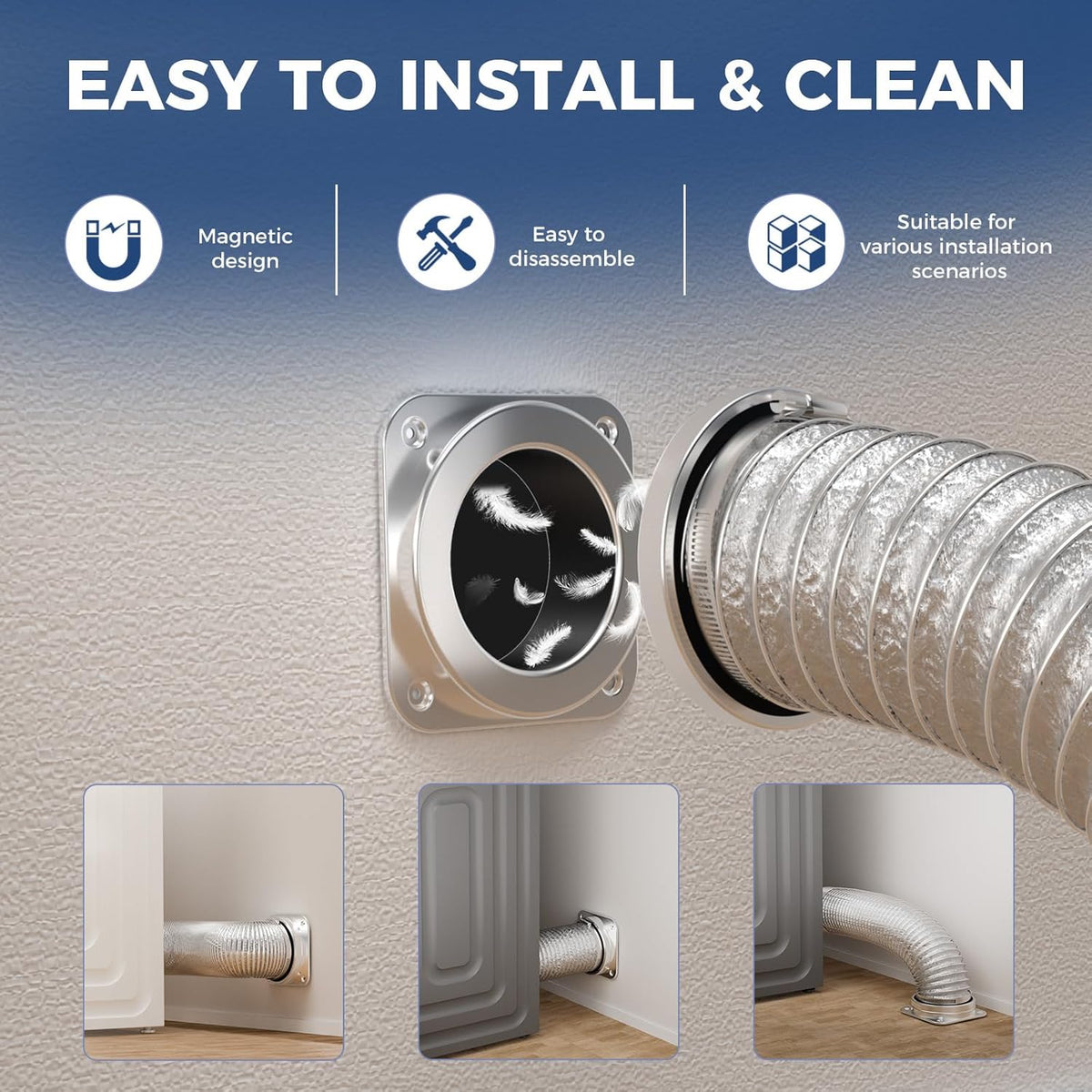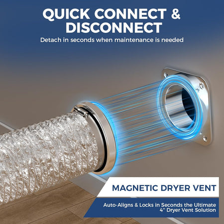 Strong Magnetic Dryer Vent Connector for Easy Cleaning: High-strength magnetic coupling keeps the dryer vent securely in place while allowing quick release for routine lint cleaning. The magnetic design simplifies maintenance and improves convenience.
