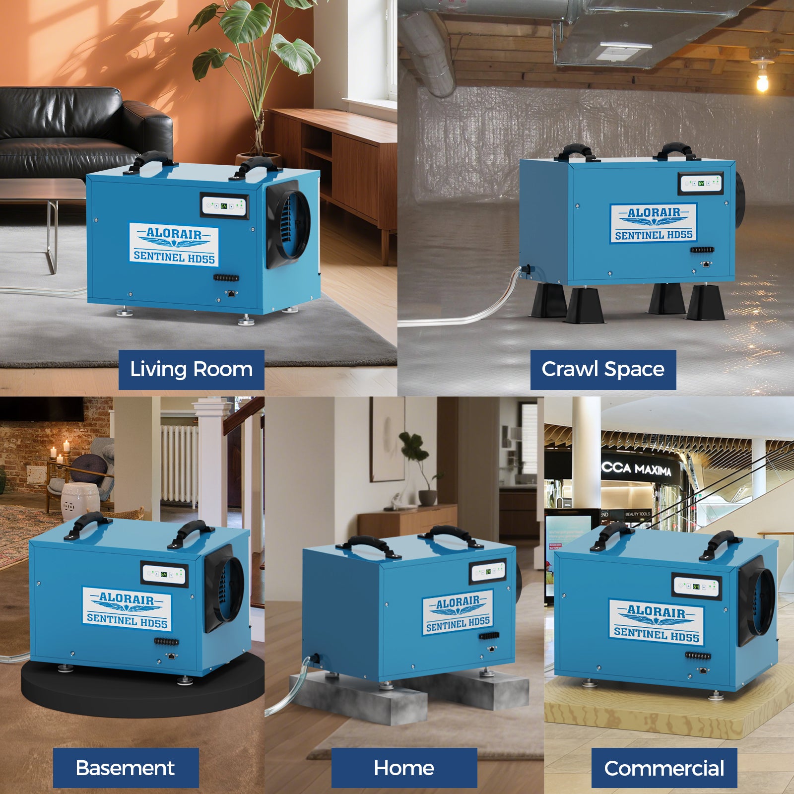 AlorAir Sentinel HD55 WI-FI App Controlled Dehumidifier has been one of the top choices for various applications such as: Garages/Warehouses/Basements/Crawl Spaces/Shops/Restaurants/Bars/Museums/Sports Hall/Computer Rooms/Cellars/Offices/Laboratories/Food Storage.